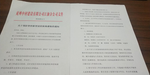 疫情就是命令,防控就是責(zé)任,為有效預(yù)防、及時控制公司新型冠狀病毒感染肺炎疫情的發(fā)生及蔓延,規(guī)范疫情應(yīng)急處理工作,保護公司員工的身體健康與生命安全,最大限度地降低和消除因疫情給公司生產(chǎn)經(jīng)營造成的負面影響,確保公司生產(chǎn)經(jīng)營的順利進行,江油分公司結(jié)合實際情況制定了各項預(yù)案及措施: 一、首先成立了疫情防控小組及應(yīng)急預(yù)案;做到專人專崗,統(tǒng)一領(lǐng)導(dǎo),分級負責(zé),預(yù)防為主,防治結(jié)合,合理進行人力分配和防控布局。  二、與當(dāng)?shù)亟值?、衛(wèi)生防疫部門密切聯(lián)系,隨時接受疫情方面的預(yù)警預(yù)報,協(xié)助政府有關(guān)職能部門做好預(yù)防、控制的安排工作。做好各項防疫臺賬,及時匯報。通過各種渠道積極做好疫情防控科普知識宣傳工作,使員工了解疫情傳播的特點及預(yù)防知識,增強科學(xué)防范意識,提高防范保護能力。  三、采購必要的防護用品,包括口罩、消毒酒精、消毒粉等,統(tǒng)一調(diào)配防控物資盡量做到隨時應(yīng)急隨時使用,并組織人員統(tǒng)一對辦公場所、樓道、廁所等區(qū)域進行消毒處理。  四、嚴格落實體溫檢測制度,在礦區(qū)入口設(shè)立防疫站,對進出礦區(qū)、辦公區(qū)等人員實施人員消毒及體溫檢測,對體溫超標(biāo)的同事立即安排就診或居家隔離。  五、嚴格要求全體員工做好自我保護工作,辦公或外出均須佩戴口罩;就餐時不得聚集等措施,現(xiàn)場辦公人員必須佩戴口罩。做到少出門、少聚集、勤洗手、勤通風(fēng)。 六、做好返崗復(fù)工人員的安排,設(shè)隔離留觀室。對來自疫情發(fā)生地的員工,勸其留在原居住地,防止疫情擴散蔓延;已經(jīng)返工的,要求其自抵達后自我隔離,在隔離場所觀察14天。安排單人單間、相對獨立房間設(shè)立疫區(qū)返崗人員廠內(nèi)臨時隔離場所。隔離人員必須每日進行體溫測量,如出現(xiàn)發(fā)熱、咳嗽、乏力等癥狀的,要戴上口罩立即到就近的定點救治醫(yī)院發(fā)熱門診就診。隔離結(jié)束后所有隔離人員必須經(jīng)過體溫檢測合格后方可解除隔離。 春回大地,萬物復(fù)蘇。兗州中材江油分公司有信心、有決心打贏防疫阻擊戰(zhàn)。防控疫情阻擊戰(zhàn),我們必將勝利。 |