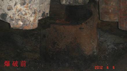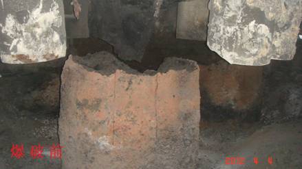 兗州中材建設有限公司云維項目部 實施石墨電極分解爆破 4月4日,應云維乙炔化工有限公司(業(yè)主)要求,我項目部對其廠區(qū)1#電石爐內石墨電極成功實施分解爆破。 本次爆破點位于業(yè)主電石車間二層電石爐內,技術人員和安全員經現(xiàn)場勘查發(fā)現(xiàn):石墨電極為直徑1.2m、高約1.5m的圓柱狀石墨體,從中心呈輻射狀均勻分布12塊約1cm厚鋼板。三個電極呈“品”字狀分布在一個直徑約7~8米的幾乎密閉的鋼制反應爐內(有洞口)。爆前充分勘察了爆區(qū)周圍的實際情況,結合從網絡上搜集的對石墨電極的性能分析和以往的爆破經驗,選用合適的爆破器材,擬定了幾種爆破方案。充分分析爆破方案的可行性后,選擇其中可行性較高的兩種方案進行了試爆,結合兩次試爆效果,經調整爆破參數(shù)后,最終成功拆除。 本次爆破對僅隔約10米遠、正在生產的2#爐和庫房未產生任何影響。 這次爆破工作雖小,但我們本著謹慎、科學的態(tài)度對待。從爆破參數(shù)的選擇到安全警戒都認真小心,取得了預想的效果。 通過這次爆破,積累了對巖石以外材料的爆破經驗,也增加了我項目部尤其是年輕人工作技能。也到了業(yè)主的認可。 孟永旺