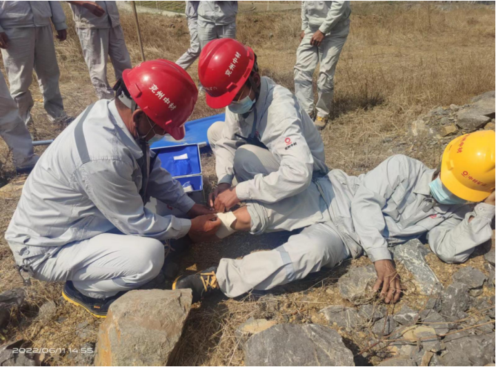 本次演練主要是模擬邊坡坍塌人員被砸傷的情景,演練開(kāi)始,首先由現(xiàn)場(chǎng)工作人員按照預(yù)案進(jìn)行事故上報(bào),接著現(xiàn)場(chǎng)負(fù)責(zé)人王海生安排所有作業(yè)人員和設(shè)備撤離現(xiàn)場(chǎng)并上報(bào)應(yīng)急指揮小組,副組長(zhǎng)龔士朋在接警后向組長(zhǎng)魯臣匯報(bào)情況后請(qǐng)示啟動(dòng)應(yīng)急救援預(yù)案,組長(zhǎng)魯臣下達(dá)指令:“立即啟動(dòng)應(yīng)急救援預(yù)案!”副組長(zhǎng)龔士朋迅速組織通信警戒組、搶險(xiǎn)救援組、物資保障組等按照各小組的分工與職責(zé),趕赴現(xiàn)場(chǎng)展開(kāi)救援,轉(zhuǎn)移受傷人離開(kāi)險(xiǎn)境,緊急處理傷員傷勢(shì)并與現(xiàn)場(chǎng)等候的120急救人員協(xié)力送醫(yī)救治,圓滿完成各項(xiàng)演練任務(wù)。