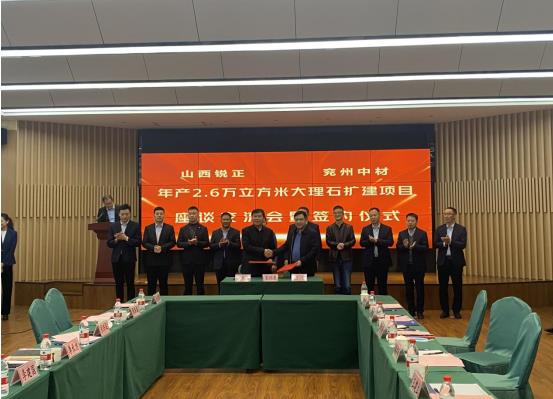 山西銳正大理石開采有限公司與兗州中材建設(shè)有限公司舉行簽約儀式