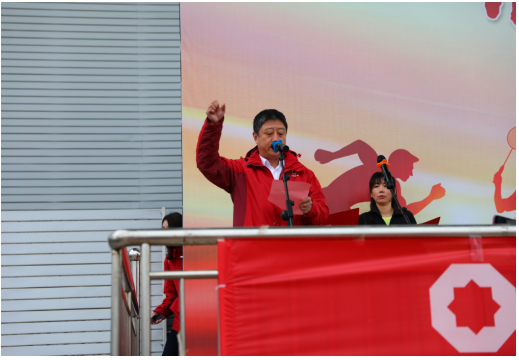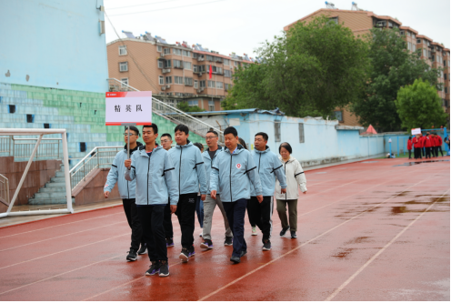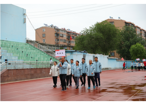 (兗州中材黨委委員、副總經(jīng)理顏景祥致詞) 踏著激昂的運(yùn)動員進(jìn)行曲節(jié)拍,運(yùn)動員們精神抖擻、斗志昂揚(yáng),排列著整齊的方陣,在旗手的引領(lǐng)下,喊著響亮的口號,依次有序地走過主席臺。