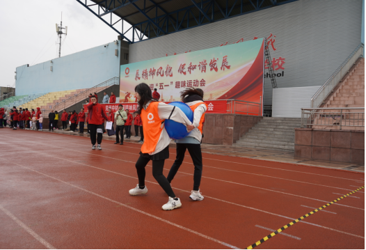 五、背對背夾球跑 不長不短的距離 需要的是全身心的投入 這是速度與毅力的結(jié)合 這是期望與完夢的接力 此時(shí)此刻 你們處在最風(fēng)光的時(shí)刻 只要跑下來 你們就是英雄