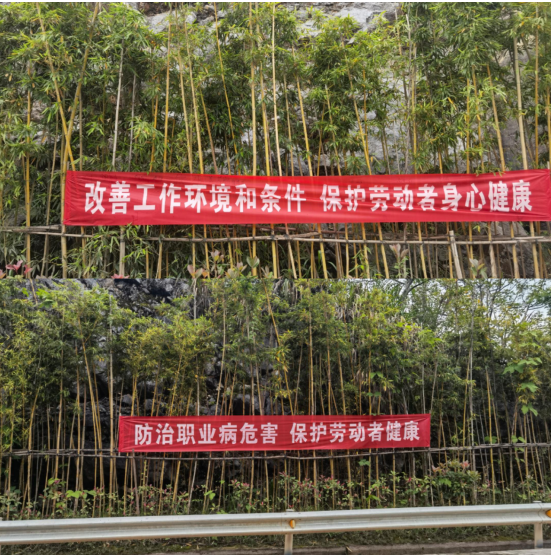為使宣傳活動(dòng)更深入人心,在礦山道路兩旁懸掛宣傳橫幅,時(shí)刻提醒各崗位職工的健康防護(hù)意識(shí)。
