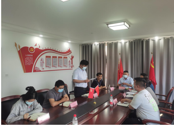 2022年6月10日兗州中材禹州蕭縣黨支部與焦作晉城黨支部在白坪分公司召開預備黨員轉正會議,公司黨委副書記何芳訓、黨群部長李增光、部長助理逯瑞及兩支部黨員參加了會議。 會議首先根據(jù)《發(fā)展黨員工作細則》和黨員、群眾無記名投票結果,經(jīng)支委會研究決定,同意沈磊、劉洋同志轉為正式黨員。黨群部部長李增光要求,要加強支部建設,嚴格落實基層黨建工作,黨員每年學習燈塔教育課時平均在150學時,要盡職盡責做好本職工作。公司黨委副書記何芳訓對兩名同志成為正式黨員表示祝賀,并要求兩名同志要繼續(xù)努力,嚴格按黨員標準要求自己,為公司高質量發(fā)展貢獻力量。