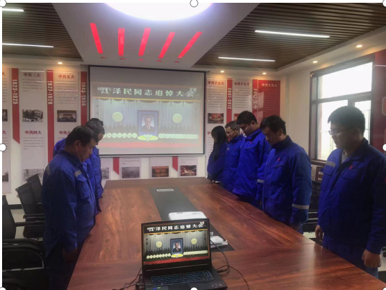 上午10時,在低回的哀樂聲中,白坪分公司全體員工集體默哀,表達(dá)對江澤民同志的崇高敬意和深切緬懷。