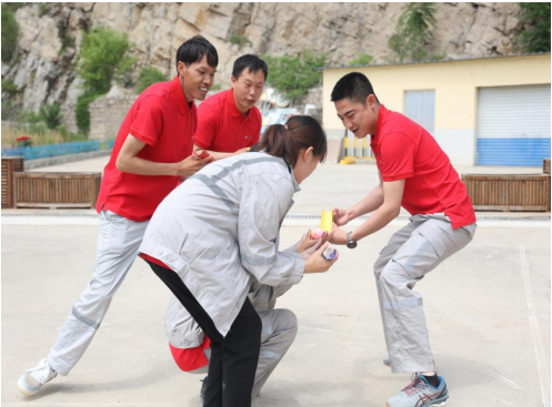 參觀施工現(xiàn)場(chǎng)結(jié)束后,共建團(tuán)體開展了背靠背雙人運(yùn)氣球和接力運(yùn)球等生動(dòng)活潑的趣味活動(dòng)。賽場(chǎng)上,大家積極參與,氣氛非?;钴S,大家賽出了水平,賽出了風(fēng)格,賽出了友誼,以更加飽滿的熱情和昂揚(yáng)向上的精神風(fēng)貌投身到工作中去。比賽結(jié)束后,侯相欽為參賽人員發(fā)放了獎(jiǎng)品并合影留念。